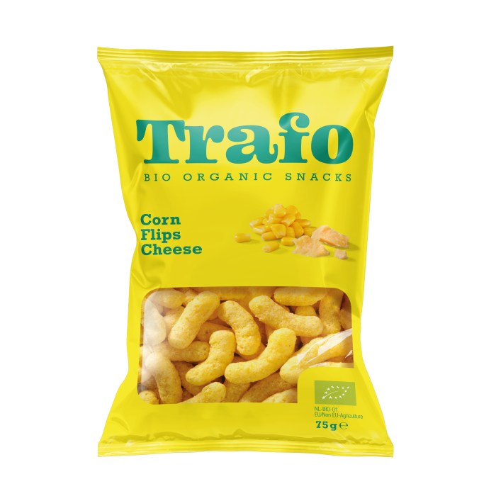 Trafo Cheesflips sind luftig-krosse Flips auf Basis von Mais mit herzhaftem Käsegeschmack