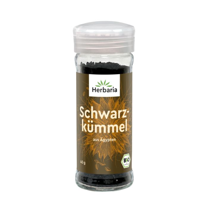 Schwarzkümmel (lat.: Nigella sativa), ganze Samen. Weit verbreitet in Südeuropa, Nordafrika sowie Vorder- und Zentralasien. Der Geschmack wird als leicht bitter und nussig beschrieben.Produkthinweise