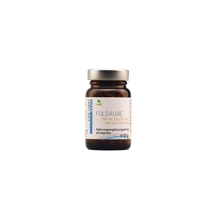 Ein orthomolekulares Folat (Vitamin B9), das insbesondere zur normalen Funktion bei der Zellteilung und zur normalen Blutbildung beiträgt