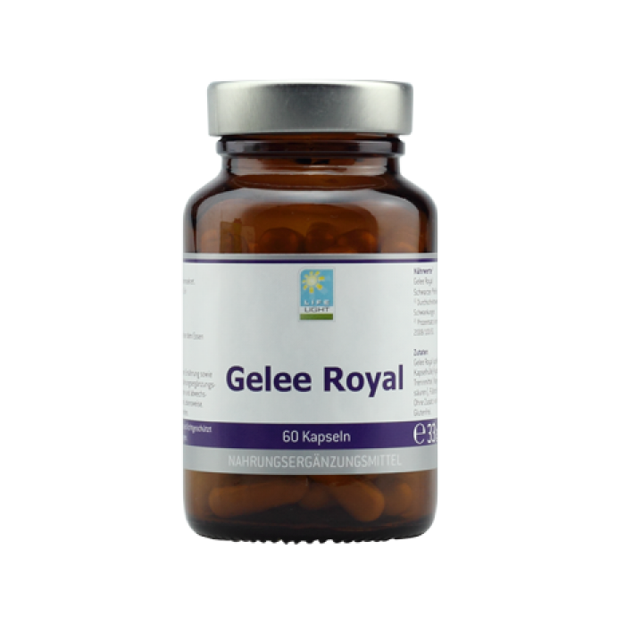 | Zutaten | Gelée Royal lyophilisiert (3% 10HDA), pflanzl. Kapselhülle (Hydroxypropylmethylcellulose), Trennmittel (Magnesiumsalze von Speisefettsäuren), Füllstoff (mikrokristalline Cellulose). |
