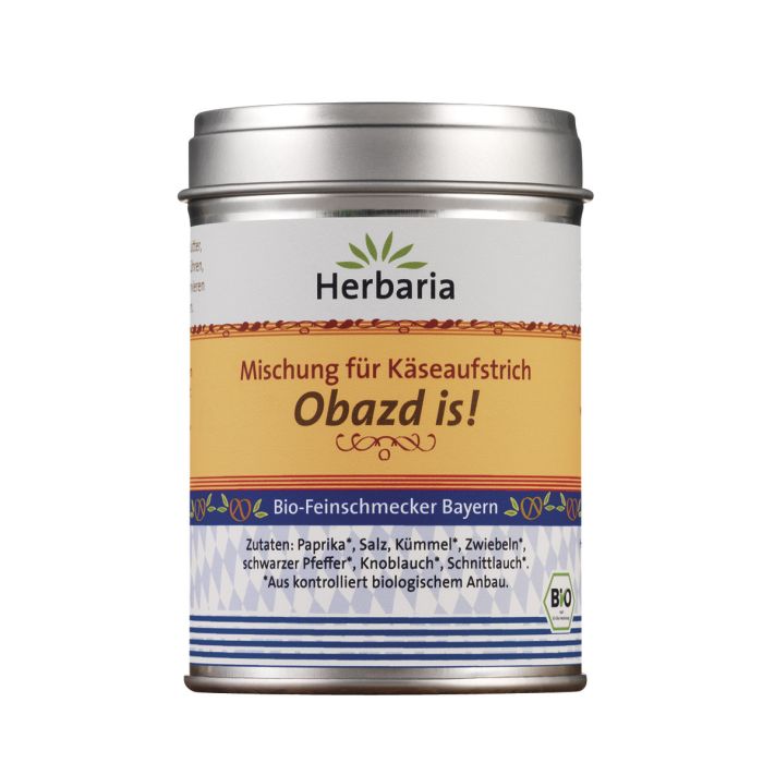 Herbaria Obazd is! Ist eine Bio-Gewürzmischung für den beliebten bayerischen Käseaufstrich „Obazda“ sowie einfache Zubereitungen mit Frischkäse. Mit klassischen Zutaten wie unter anderem Paprika und Kümmel gelingt der perfekte Aufstrich - der beliebte bayerische Brotzeitklassiker "Obazda" genau wie ein einfacher Frischkäseaufstrich. Einfach, schnell und gelingsicher – dazu die Gewürzmischung einfach zum Frischkäse bzw. in die Frischkäse-Camembert-Mischung geben und vermengen! Besonders gut schmeckt der zubereitete Aufstrich mit Laugengebäck wie beispielsweise Brezen.Zutaten
