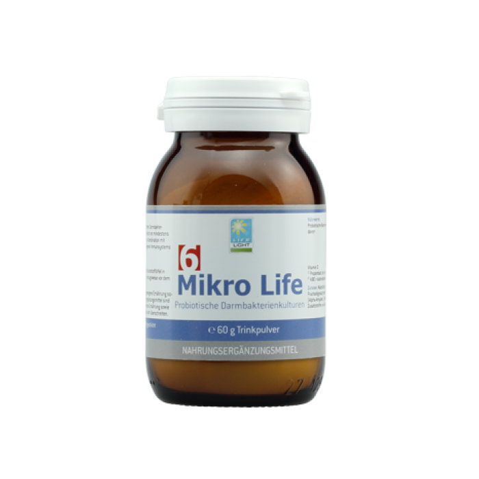 Mikro Life ist ein hochwertiges probiotisches Trinkpulver mit 6 kombinierten Darmbakterienstämmen mit einer hohen probiotischen Gesamtaktivität von mindestens 2 Milliarden koloniebildenden Einheiten pro Tagesdosis in Kombination mit Vitamin D, das zu einer normalen Funktion des körpereigenen Immunsystems beiträgt.