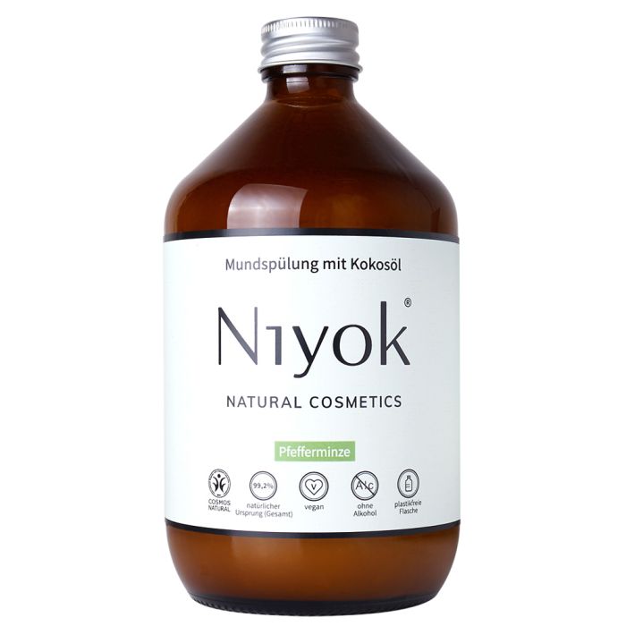 Die natürliche Mundspülung aus Kokosöl von Niyok schützt Zähne, Zahnfleisch und besonders Zahnzwischenräume. Die Mundspülung mit antibakteriellem Bio-Kokosöl schützt durch eine einzigartige Kombination aus insgesamt 4 Ölen Zähne, Zahnfleisch und besonders die Zahnzwischenräume. Xylitol komplettiert den Wirkstoffkomplex, indem es Kariesbakterien an der Reproduktion hindert. Verpackt in einer plastikfreien Glasflasche. Die Mundspülung schmeckt nach extrem erfrischender Minze. Niyok steht für vegane Naturkosmetik im minimalistischen Stil. Kein Mikroplastik. Kein Palmöl. Made in Germany.Produkthinweise