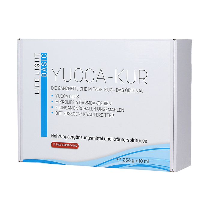 | Zutaten | Bittersegen: Wasser, Kräuter- und Gewürzextrakte. Alk. mind. 59 % vol. Flohsamenschalen: 100% reine Flohsamenschalen ungemahlen. Ohne Zusatz von Farb- und Konservierungsstoffen. Gentechnikfrei. Glutenfrei. Yucca Plus: Yucca-Wurzel aus Wildwuchs (50%), Gerstengraspulver getrocknet (50%), pflanzliche Kapselhülle (Hydroxypropylmethylcellulose). Ohne Zusatz von Farb- und Konservierungsstoffen. Glutenfrei. MikroLife: Maisstärke, Maltodextrin, probiotische Bakterienkulturen (Bifidobacterium bifidum, Lactobacillus acidophilus,Lactobacillus casei, Lactobacillus, salvarius, Lactococcus lactis, Enterococcus faecium), Fructooligosaccharide (FOS), mikrokristalline Cellulose, Enzym (Alpha-Amylase), Vitamin D (Cholecalciferol). Ohne Zusatz von Farb- und Konservierungsstoffen. |