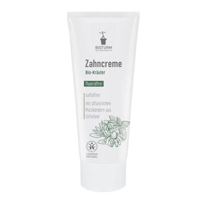 Besonders milde pflanzliche Putzkörper aus Cellulose reinigen die Zähne effektiv und entfernen dabei den Zahnbelag äußerst schonend. Die neuartigen Putzkörper erzielen eine hohe Reinigungswirkung, sind aber gleichzeitig sanft zum Zahnschmelz. Die Zahncreme Bio-Kräuter ist besonders für empfindliche Zähne und Zahnfleisch geeignet, denn Bio-Extrakte aus Kamille, Salbei und Melisse beruhigen und schützen. Die regelmäßige Anwendung der sulfatfreien Zahncreme trägt zum Schutz vor Karies und dem Erhalt von gesunden Zähnen und Zahnfleisch bei. Zusätzlich entsteht durch Bio-Pfefferminze ein angenehm frisches Mundgefühl.Produkthinweise