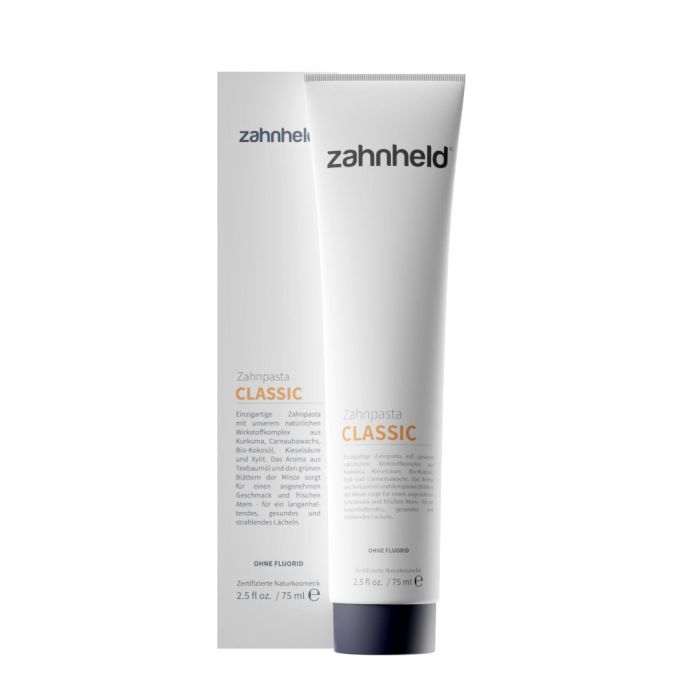 Einzigartige Zahnheld Zahnpasta mit natürlichem Wirkstoffkomplex Kurkuma, Kieselsäure, Bio-Kokosöl, Xylit und Carnaubawachs. Das Aroma aus Teebaumöl und den grünen Blättern der Minze sorgt für einen angenehmen Geschmack und frischen Atem - für ein langanhaltendes, gesundes und strahlendes Lächeln.